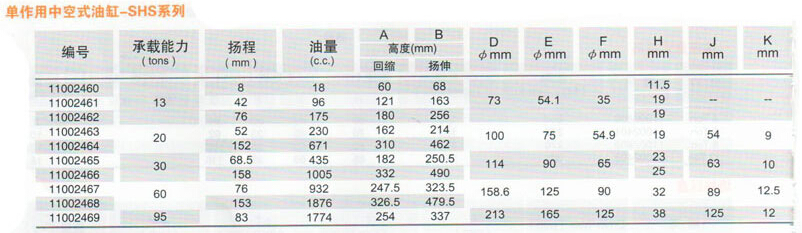 單作用中空式油缸-SHS系列規(guī)格:
