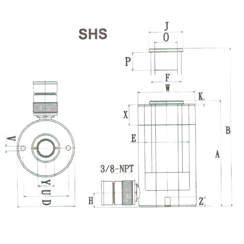 單作用中空式油缸-SHS系列最大工作壓力:700bar/10000psi,承載能力:13-95噸,揚(yáng)程:8-155mm
