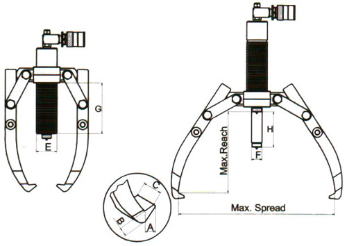 1、分離式液壓泵設計,使用者可以輕松操控,并設有內建式安全閥,可避免拉馬損害。